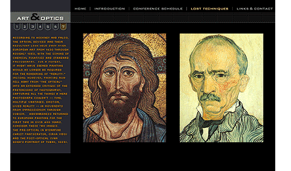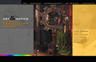 This site for the New York Institute for the Humanities was constructed to address David Hockney's theories considering opticality in Western painting of the last 600 years.
