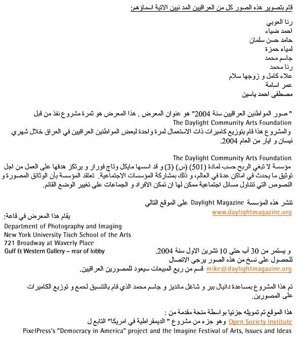 The exhibition, Photographs by Iraqi Civilians, 2004,